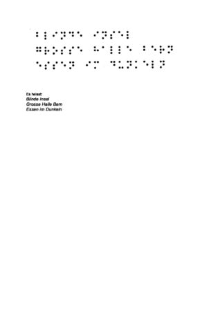 Von Giorgio Andreoli & Regula Schwarz — Das Restaurant Blinde Insel – in der Grossen Halle – lädt vom 5. Februar bis zum 26. März 2011 erneut zu einem sinnlichen Erlebnis ein. In völliger Dunkelheit servieren blinde und sehbehinderte Menschen ein kreatives 3‑Gang-Menu. Renommierte Kochkünstler aus der Region Bern verwöhnen die Gäste mit ihren kulinarischen Kunstwerken.