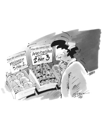 An diesem Punkt wird deut­lich, was die harte Kon­se­quenz allzu har­ter Konkur­renz im Tief­preis­seg­ment bedeutet: im Kampf um die Kundin­nen und Kun­den schnei­den sich die Wet­teifer­n­den ins eigene Fleisch. Im Kampf um Bil­lig­pro­duk­te kön­nen Schweiz­er Marken nicht mithal­ten, denn es find­en sich immer Län­der und Leute, die bere­it sind, zu schlecht­en und schlechteren Bedin­gun­gen für noch weniger Geld zu arbeit­en. So wird die Dis­coun­ti­tis zum Eigen­tor. In let­zter Kon­se­quenz wer­den hiesige Arbeit­splätze tat­säch­lich zum Son­derange­bot, bis sie zum Sor­ti­ment her­aus­fall­en.