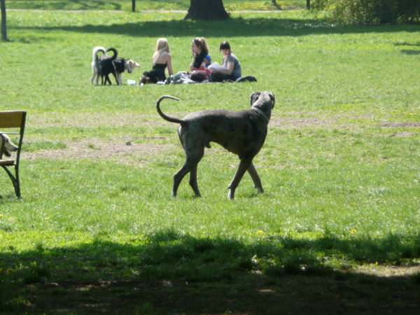 Trotz­dem stinkt es. Warum? Weil es zu viele Hunde hat. Unter jedem zweit­en Tisch in diesem Restau­rant liegt ein­er zwis­chen den Stuhlbeinen; gäh­nt, legt den Kopf auf die Pfoten oder hechelt mit Blick zu seinem Besitzer. «Fuss», «Platz», «Brav» höre ich beim Spazieren am See, vor der Met­zgerei, im Bus, im Zug. Die Schweiz ist ein Hun­de­land. Aller Gat­tig Leute haben Hunde. Hunde sind Helfer, Kinder­fre­und und Kinder­ersatz, Ersatz­part­ner, Lebens­be­gleit­er, Acces­soire. Und Hunde sind vor allem eins: Haustiere; vom Men­schen domes­tizierte Tiere. Der Men­sch nahm sich den Hund und sprach: «Du sollst mein Fre­und sein, ich werde dich füt­tern und pfle­gen, wenn du tust, was ich dir sage.» Und diesen Teufelspakt ist der Hund einge­gan­gen, ohne sich der Kon­se­quen­zen bewusst zu sein: Nie mehr in Frei­heit leben zu kön­nen, Frauchen und Her­rchen zu gehorchen, olle Spielchen mitzu­machen wie «Pfötchen geben». Mir scheint, im Besitz eines Hun­des kann der Men­sch sein­er Herrscher­rasse gerecht wer­den: Er erzieht das Tier dazu, ihm zu gehorchen. Er macht das Tier von sich abhängig, indem er bes­timmt, wann das Tier zu essen bekommt. Wenn Hun­di brav ist, gibts auch mal ein Hun­deguet­zli. Der Hund wiederum gibt dem Men­schen das Gefühl, dass er ihn braucht; seine Aufmerk­samkeit, sein Wohlwollen, seine Liebe. Und die Liebe des Hun­des ist bedin­gungs­los – denn der Hund kann sich nicht aus­suchen, in wessen Obhut er kommt. Irgend­wann wird er an die Leine genom­men, wird in der Hun­de­schule willig gemacht und wird Teil der Zivil­i­sa­tion. Der Hund passt sich dem Rhyth­mus des Men­schen an: Auf­ste­hen, früh­stück­en, Spazieren gehen, vor der Post warten, vor dem Lebens­mit­tel­laden warten, vor der Bank warten, warten, wenn Men­sch mit anderen redet, warten, bis es essen gibt, hin­le­gen, vom Men­schen gestre­ichelt wer­den, warten aufs Spazieren gehen, Spazieren gehen, warten bis Men­sch Stöck­li auf die Wiese wirft, Stöck­li für Men­schen holen, Gas­si gehen, Men­sch wartet.
