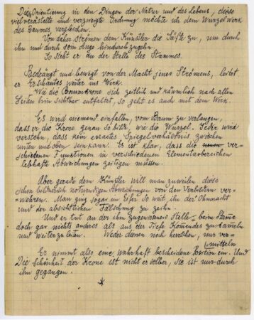 Wir wer­den diese Mate­ri­alen voll­ständig dig­i­tal­isieren, sie wer­den auch auf Mikro­fil­men zur Ver­fü­gung ste­hen. Geplant sind auch gezielte the­ma­tis­che Ausstel­lun­gen mit Führun­gen zur diesen the­o­retis­chen Arbeit­en. In etwa zwei Jahren wer­den wir zu den erwäh­n­ten Skizzen, Mate­ri­alien und Tex­ten eine eigene wis­senschaftliche Arbeit, mit Kom­mentaren veröf­fentlichen.