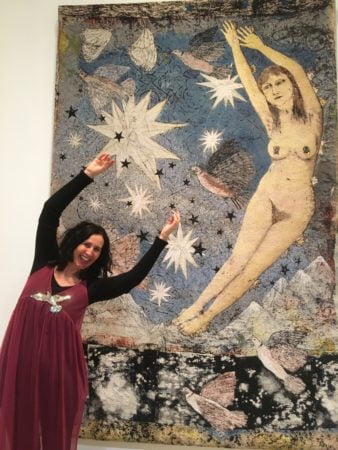Lilith war dem Talmud zufolge die erste Frau von Adam. Sie war ihm völlig gleichberechtigt, was diesem nicht passte. Als Adam sie gefügig machen wollte, verweigerte sie sich und flog einfach davon. Wären alle Frauen Lilith, #MeToo wäre ein Hashtag geblieben. Doch leider ging die Geschichte unglücklich weiter… bis Kiki Smith kam. Sie lässt das wilde Weib leben, sie zeigt die Frau verletztlich, sie nimmt der unbefleckten Heiligen die Mythologisierung, sie macht all das, was heutzutage die jungen Frauen, die sich am liebsten selber verkaufen statt in Solidarität mit fetter Weiblichkeit zu leben, bis auf ihre mageren Knochen erschreckt. Kiki Smith erzählt von Natur und Kultur, ein aufgerissener Bauch eines Wolfes gebiert die Frau. 1995 vergiftete eine Pestizidwolke in New Jersey unzählige Vögel: Kiki Smith setzte ihnen ein Denkmal. Ach: Möchte doch die Welt mit Kiki Smith verschmelzen! Sie wäre ein ehrlicherer und lebenswerterer Ort.