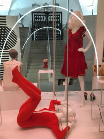 MARY QUANT, das Bild stammt aus der gleichnamigen Ausstellung, war mir – im Unterschied zu DIOR im selben Haus – zu wenig politisch, historisch, erklärend, sondern sehr oberflächlich Upper-Class goes Streetwear-Slang. Minirock, Regenmäntel und Bubikragen erscheinen im Rückblick weniger rebellisch als dies die Presse gern hervorhebt. Mary Quant war trotzdem die Vorreiterin demokratischer Designerstücke: Sie liess alle, die wollten, ihre Schnittmuster verwenden. Der Snobismus sei aus der Mode gekommen, erklärte Mary Quant: „In unserem Laden rangeln sich Herzoginnen mit Büromädchen um dasselbe Kleid“.