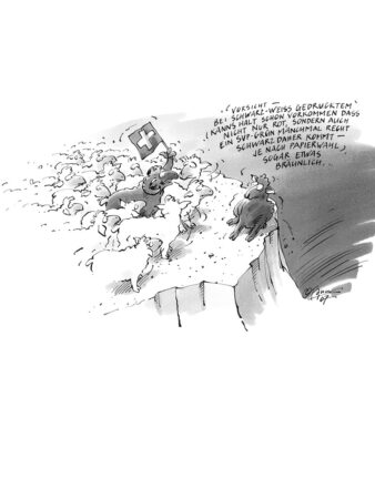 Von Lukas Vogelsang - Die SVP hat als einzige Partei begriffen, dass der Mensch eigentlich ein Schaf ist. Ein Schaf braucht einen Leithammel, sonst ist es ziemlich hilflos. Und da der Leithammel normalerweise eine DNA aus derselben Tiergattung trägt, stürzen sich alle Schafe mitsamt dem Chef in den Abgrund. Gefragt wird nicht dafür hat man ja den Leithammel. Und in ein paar Jahren wird die SVP sogar eine blochersche Evolutionstheorie publizieren, worin bewiesen wird, dass der Mensch nicht vom Affen, sondern vom Schaf abstammt. So ist das.