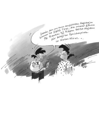 Über das poli­tis­che Rin­gen um Spe­icher­platz und seinen Wert mag die wirk­liche Ziel­gruppe der Mass­nahme höch­stens müde lächeln. Jene musikund tech­nolo­giebe­wan­derten Zeitgenossen, die sich ihre Musik und Filme im legalen Graubere­ich oder in geschlosse­nen Net­zen hochund run­ter­laden, schränken die Abgaben nicht ein. Denn sie waren und sind nicht bere­it, für solche Dateien zu bezahlen, geschweige denn urhe­ber­rechtliche Abgaben auf den nöti­gen Spe­icher­platz zu leis­ten. Kommt hinzu, dass sie sich läng­stens hochgerüstet haben mit ver­schwen­derischem Spe­icher­platz, auf Servern oder Fest­plat­ten. Dieser Spe­icher­platz fällt im Gegen­satz zum weitaus lim­i­tiert­eren auf mp3-Play­ern oder DVD-Geräten gemäss Suisa-Vor­gabe nicht unter die neue Regelung.