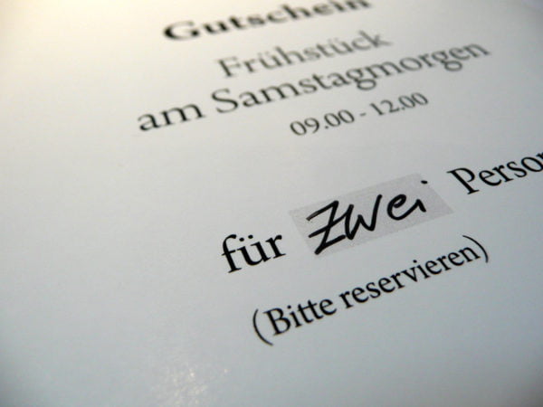 Gutscheine für einen Tag in den Bergen, Gutscheine für 5 Mal abwaschen, Gutscheine für einen Museumsbesuch, Gutscheine für ins Kino. 100 Franken-Gutscheine für den Lieblingsschuhladen. Gutschein. Gut-Schein – ein eigenartiges Wort. Es impliziert, dass es positiv ist, einen solchen Gutschein zu besitzen. Ist es auch, solange man das Verfallsdatum im Auge behält. Irgendwo lauert nämlich so ein Datum. Unten rechts, kaum zu lesen ohne Lupe.