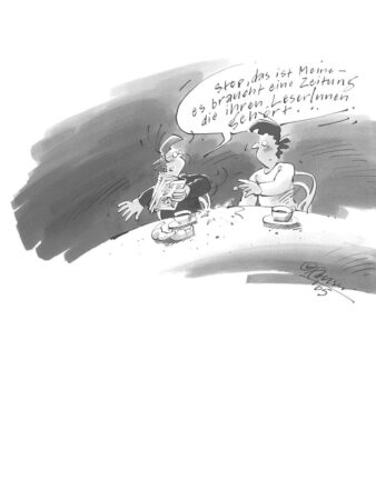 Es braucht eine Zeitung, die ihren Leserin­nen und Mitar­beit­ern gehört — und nicht den Wer­beauf­tragge­bern, die immer scham­los­er ihre Mark­t­macht und die die Finanznot der Presse aus­nutzen, um ihre immer grelleren, auf­fäl­ligeren und bun­teren Sujets in die Zeitun­gen zu drück­en und die redak­tionellen Texte immer mehr an den Rand zu quetschen.